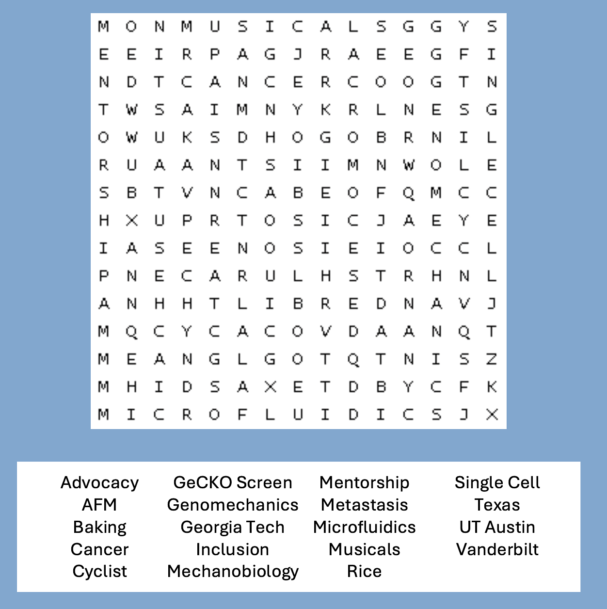 Get to know me a bit more by completing these puzzles I made for the 2024 and 2025 BMES Annual Meetings!